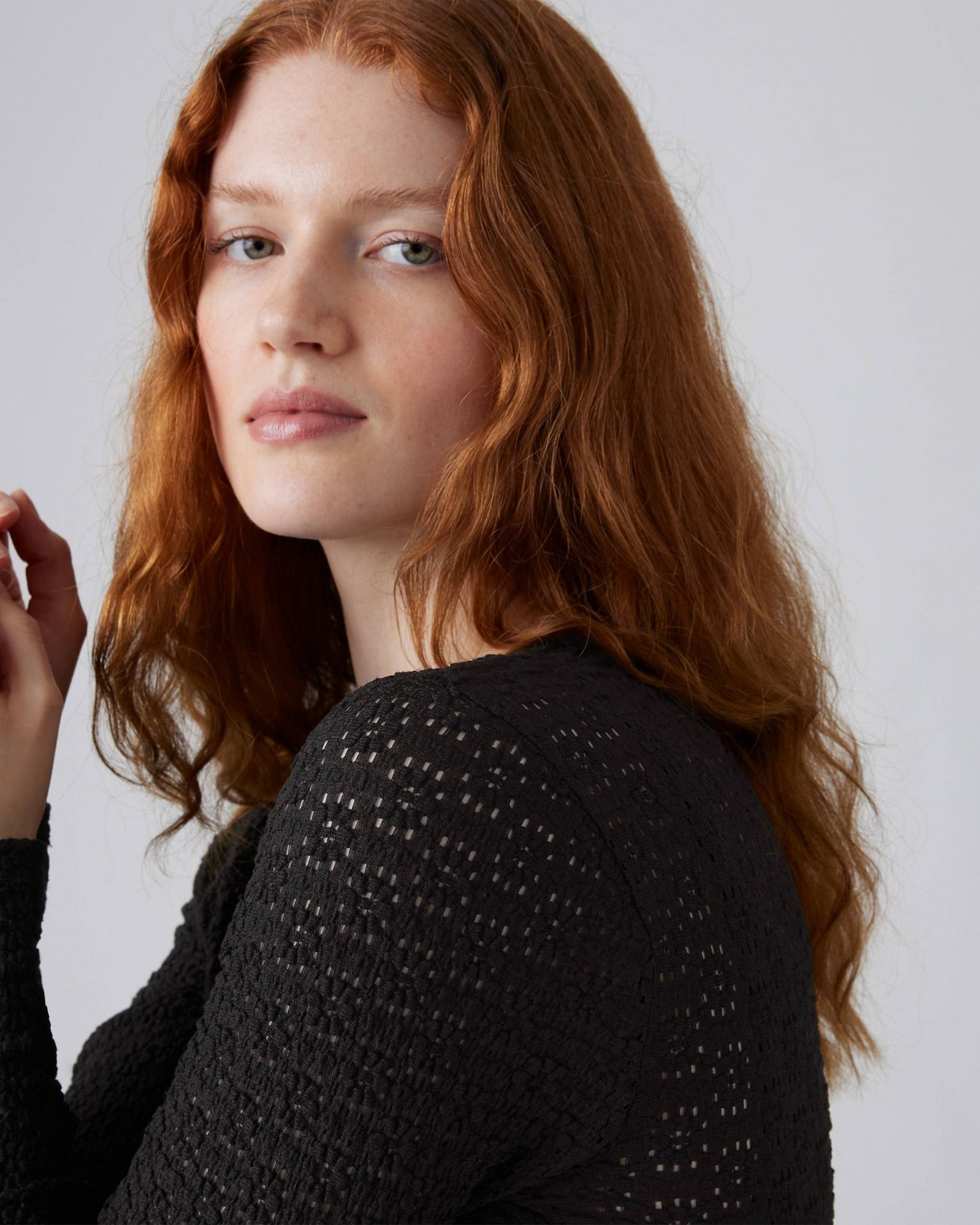 Áo tay dài xuyên thấu không hề nhàm chán. Áo Anika Crewneck của chúng tôi có cổ tròn cao và phom dáng ôm sát tôn dáng với họa tiết vui tươi.