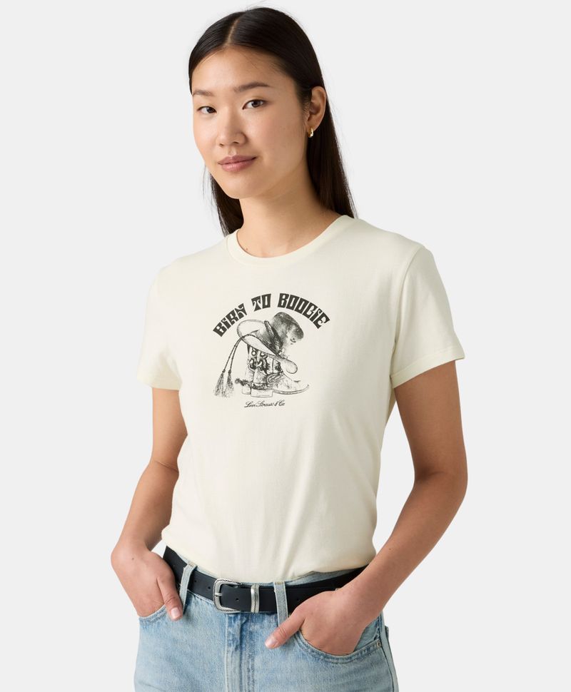 Trong tủ đồ của một quý cô tinh tế, chiếc áo thun Levi's® Women's Perfect T-Shirt không chỉ đơn thuần là một món đồ cơ bản. Với sắc Kem (Cream) trang nhã cùng họa tiết "Born To Boogie" mang hơi thở hoài cổ, sản phẩm là minh chứng cho triết lý Quiet Luxury – đẳng cấp đến từ sự đơn giản và chất lượng nguyên bản. Đây là một sự đầu tư xứng đáng cho những bản phối vượt thời gian, giúp bạn tự tin từ những buổi cà phê dạo phố đến những chuyến du lịch cuối tuần đầy phong cách.