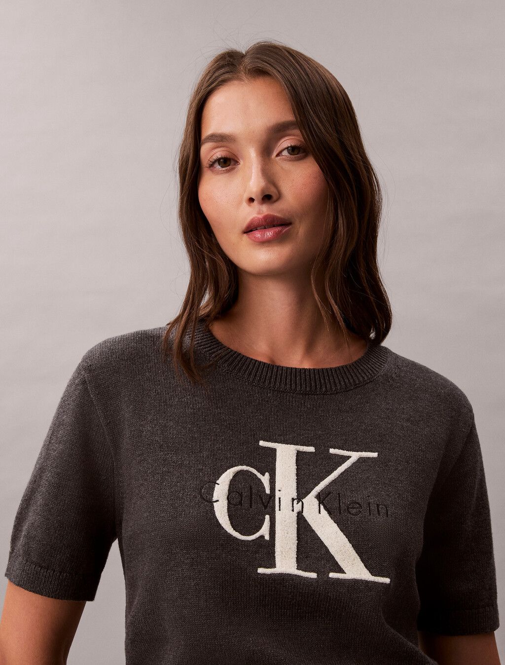 Calvin Klein - Áo len tay ngắn nữ Monologo Cropped Jumper