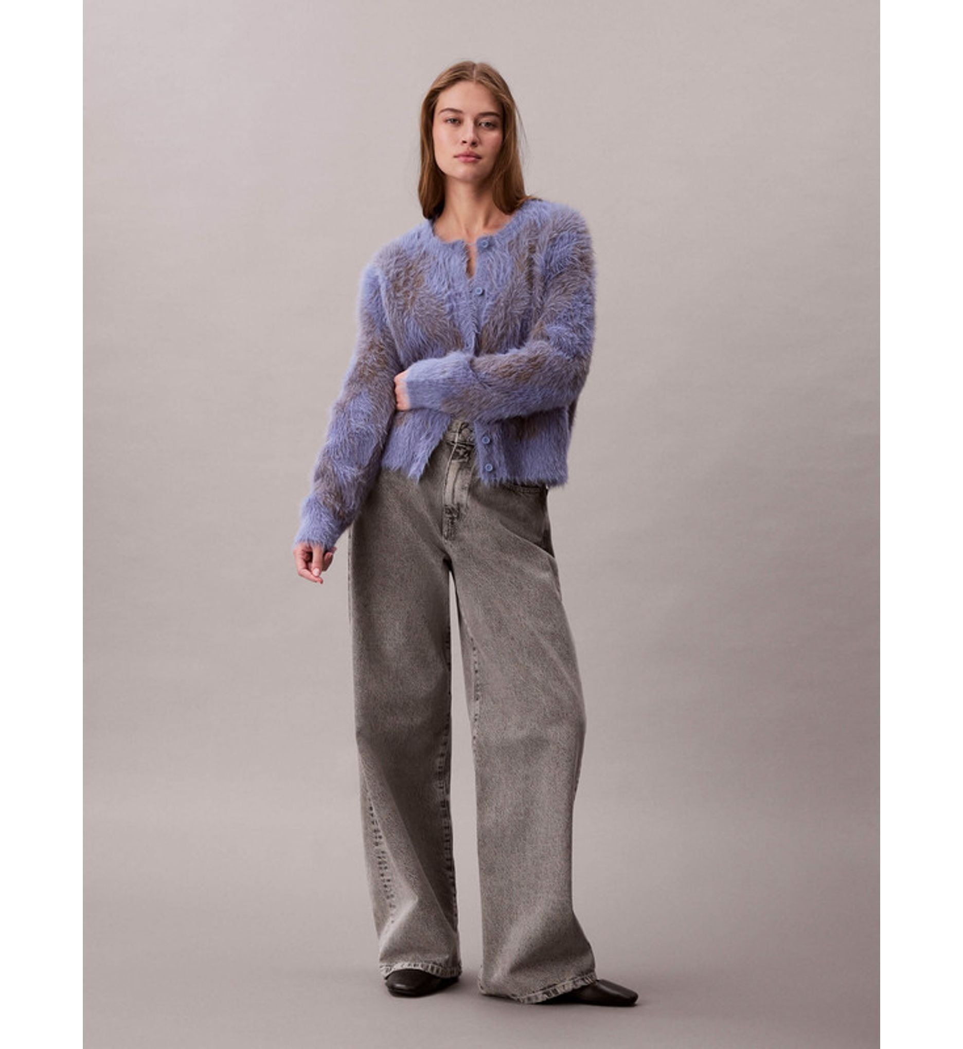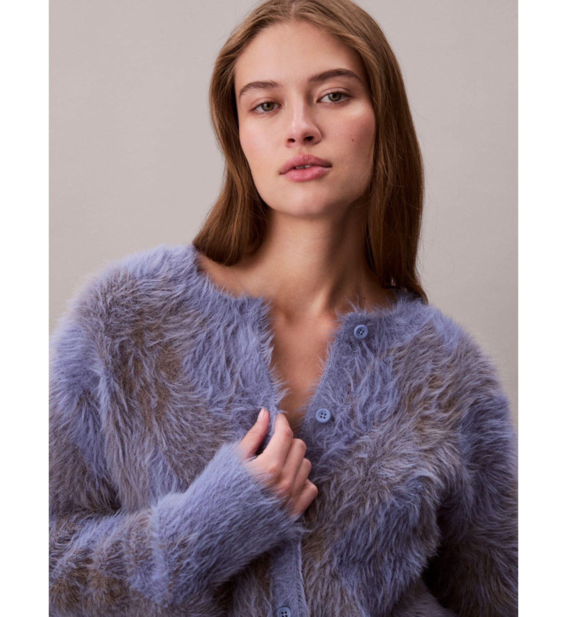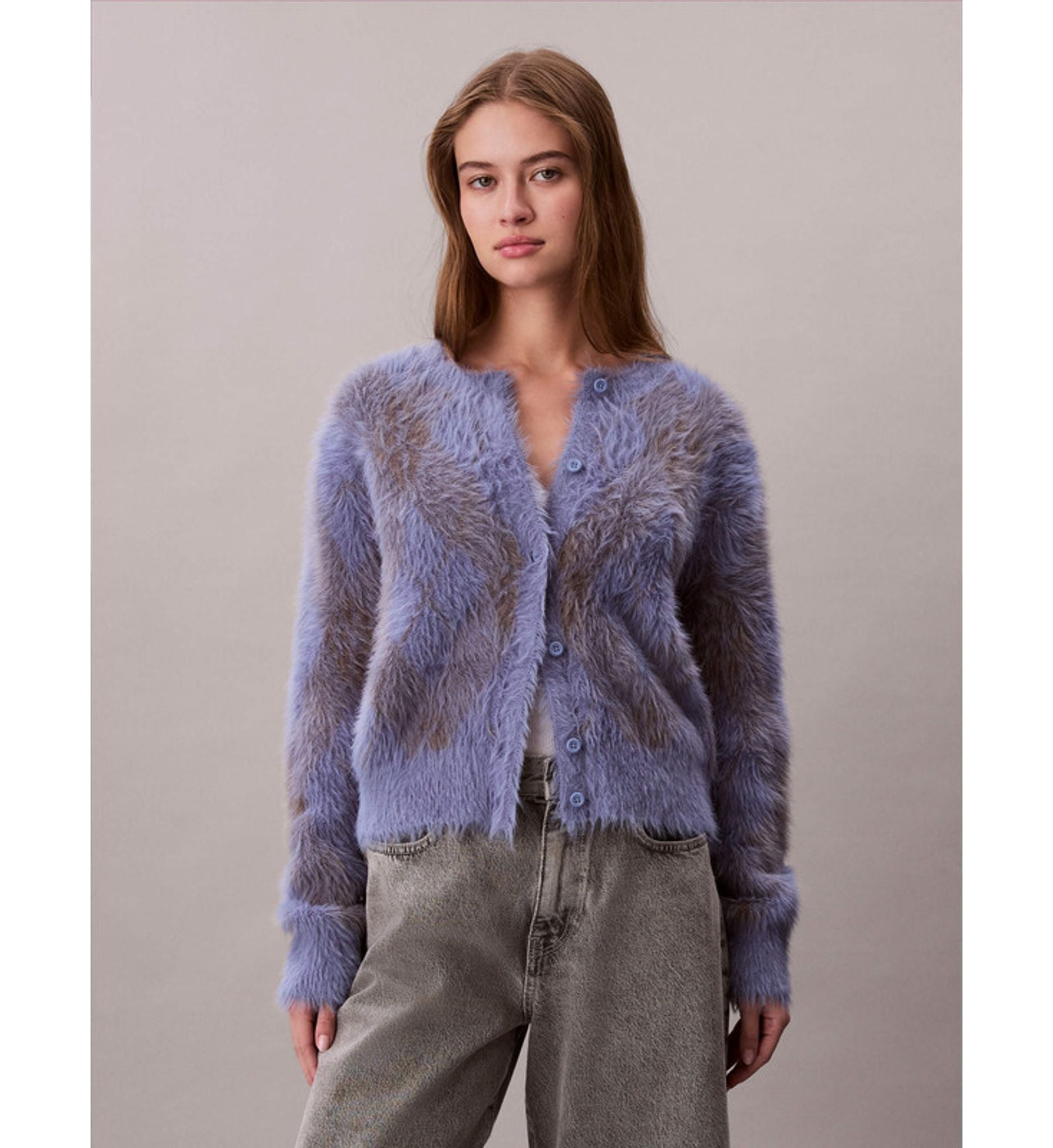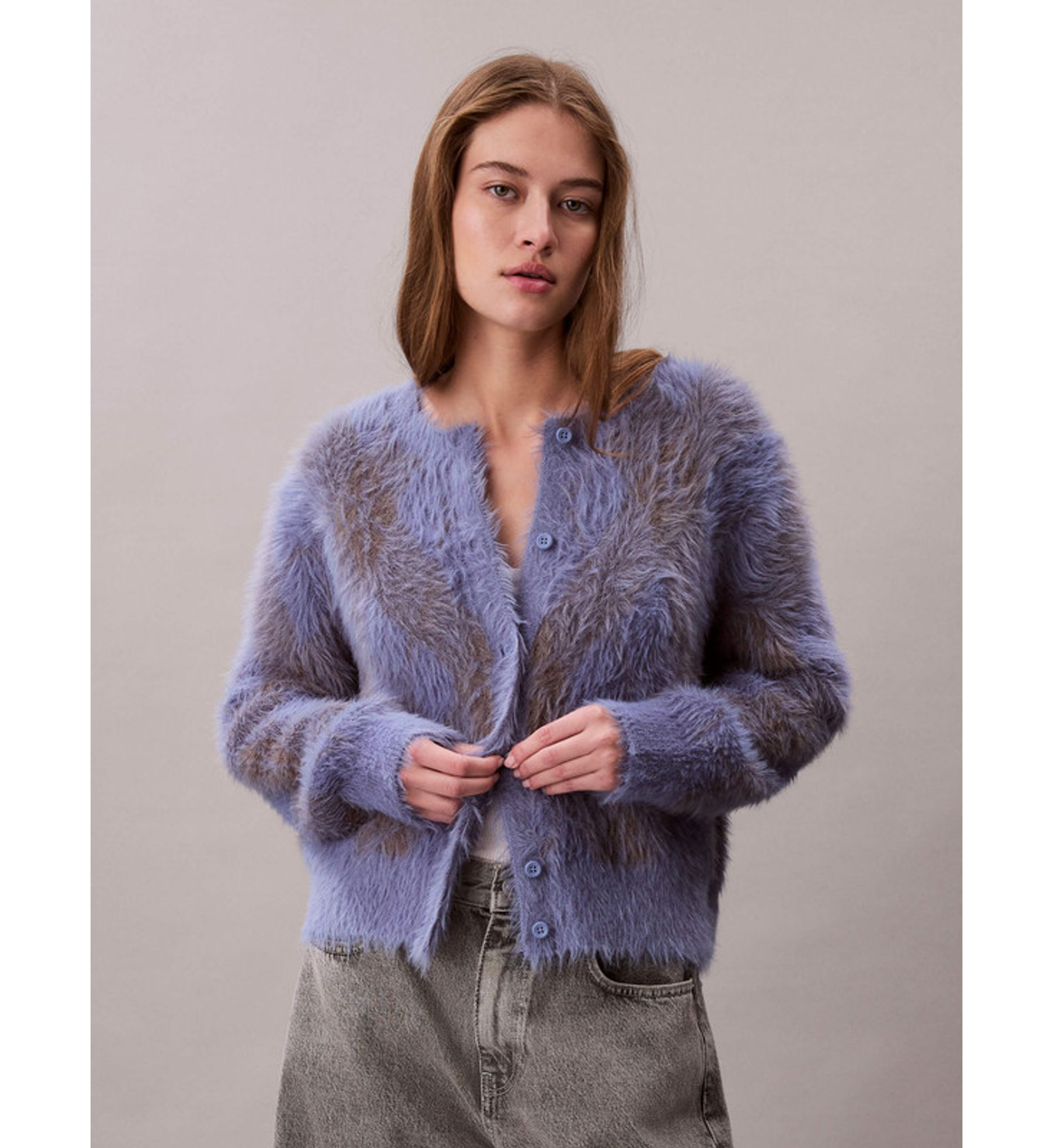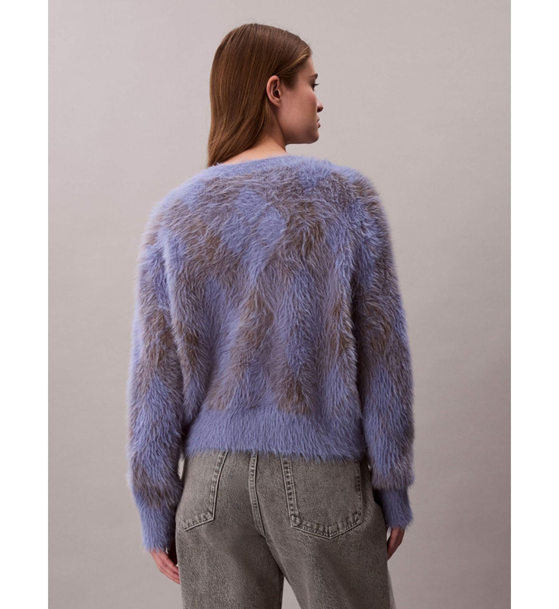 Calvin Klein - Áo len tay dài nữ Fuzzy Novelty Argyle Sweater