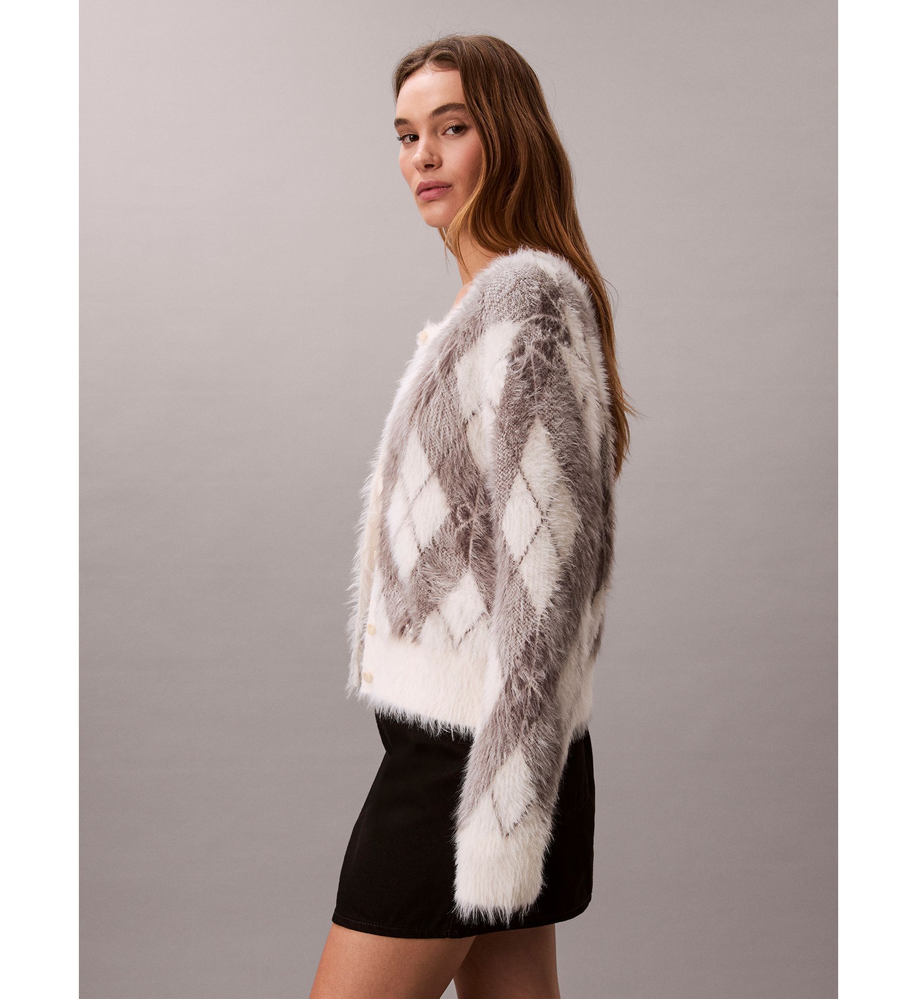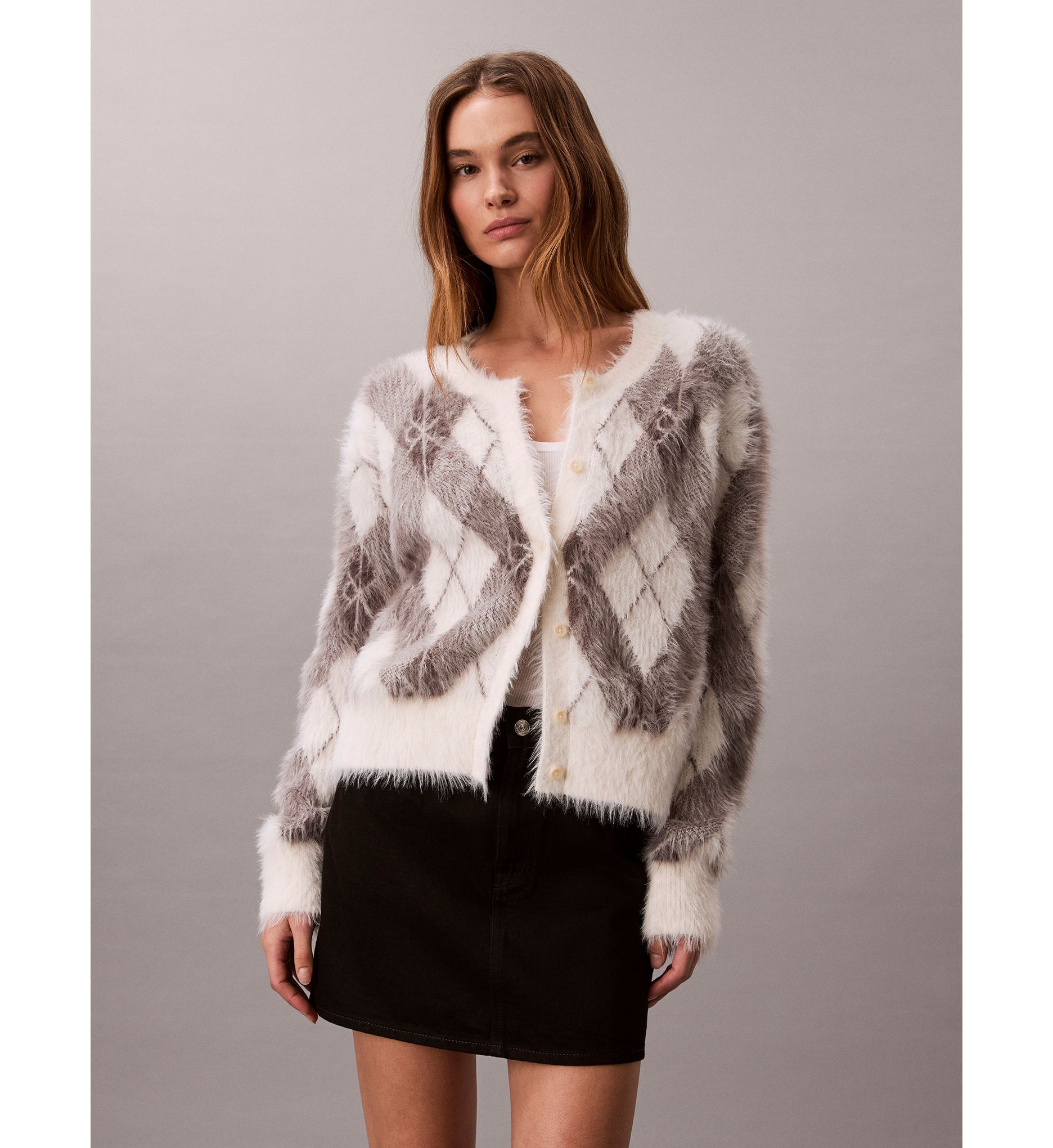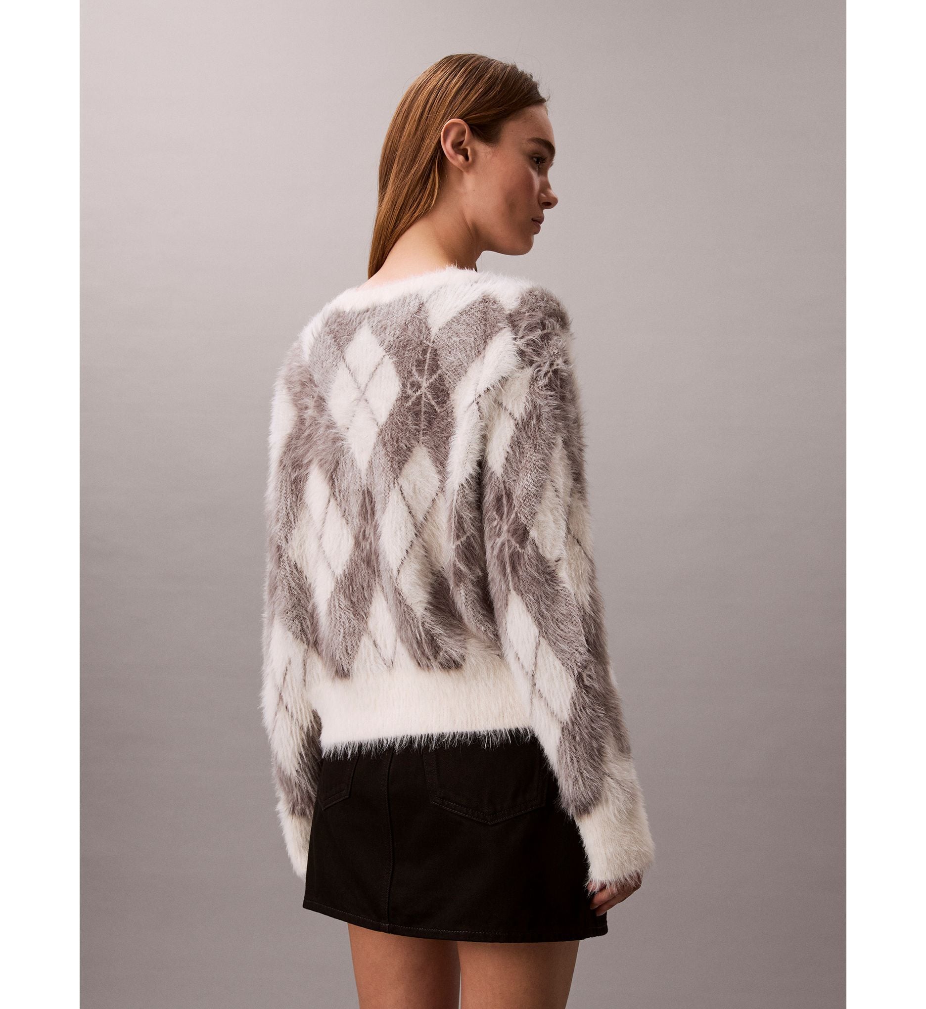 MallCalvin Klein - Áo len tay dài nữ Fuzzy Novelty Argyle Sweater