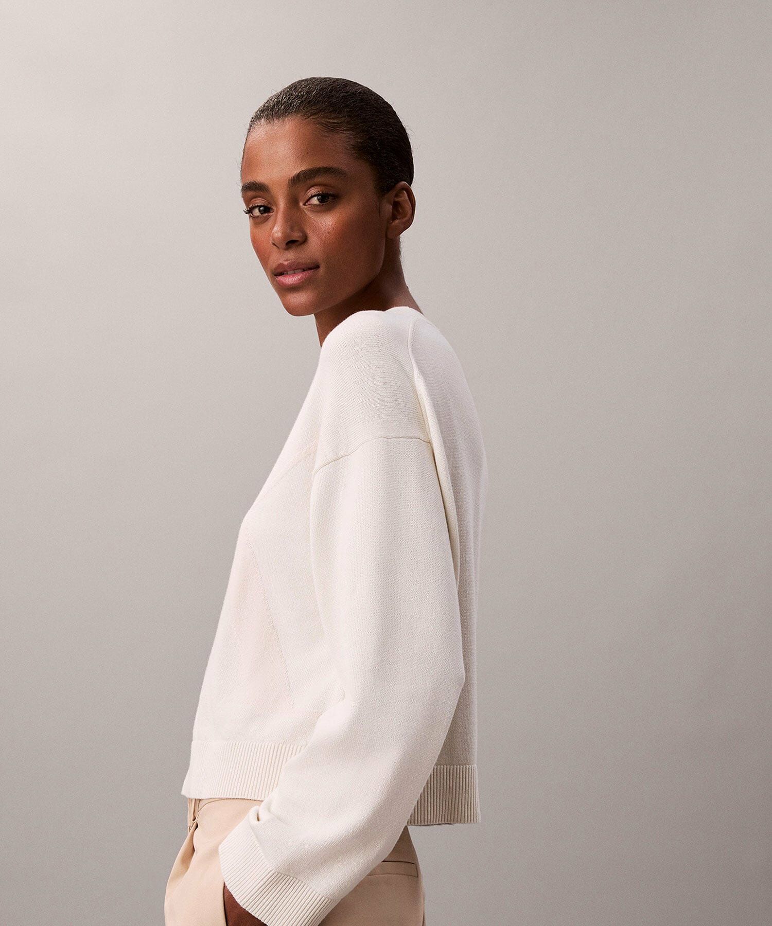 Chiếc áo len CK Long Sleeve Smooth Cotton là hiện thân hoàn hảo của xu hướng "Quiet Luxury" – sang trọng trong sự tĩnh lặng. Với chất liệu cotton cao cấp được xử lý bề mặt mịn màng cùng gam màu Kem thanh lịch, đây không chỉ là một món đồ thời trang, mà là một sự đầu tư cho tủ đồ bền vững. Thiết kế mang lại cảm giác dễ chịu tuyệt đối và vẻ ngoài tinh tế, giúp phái đẹp tự tin toả sáng từ môi trường công sở đến những buổi hẹn tối sang trọng.