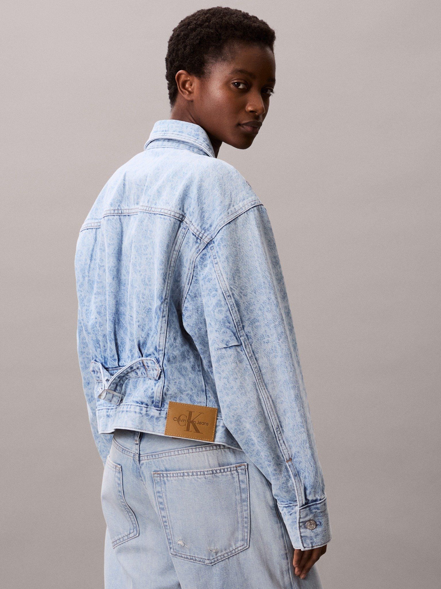 MallCalvin Klein - Áo khoác jeans nữ Monogram Logo Cropped Denim Jacket