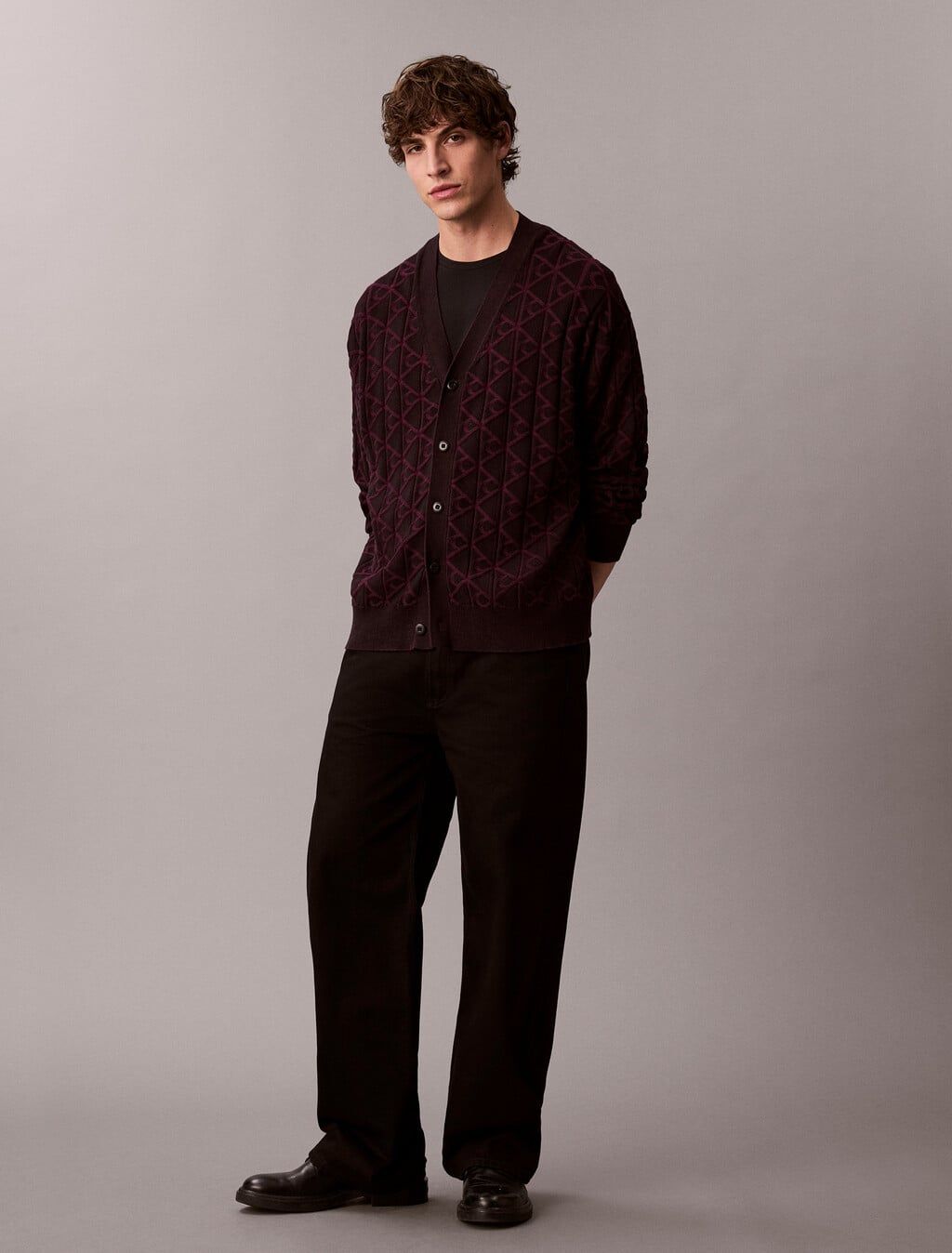 Nằm trong bộ sưu tập Xuân 2026, chiếc áo khoác len Allover Emblem Logo Relaxed Cardigan từ Calvin Klein là minh chứng cho phong cách 'Quiet Luxury' – sang trọng mà không cần phô trương. Với sắc đỏ đô (Burgundy) sâu lắng và quý phái, thiết kế này mang đến một diện mạo hiện đại, tối giản nhưng đầy quyền lực cho quý ông thượng lưu. Họa tiết logo dập chìm tinh tế trải dài trên toàn bộ bề mặt áo tạo nên một chiều sâu thị giác độc đáo, khẳng định đẳng cấp thương hiệu một cách khéo léo.