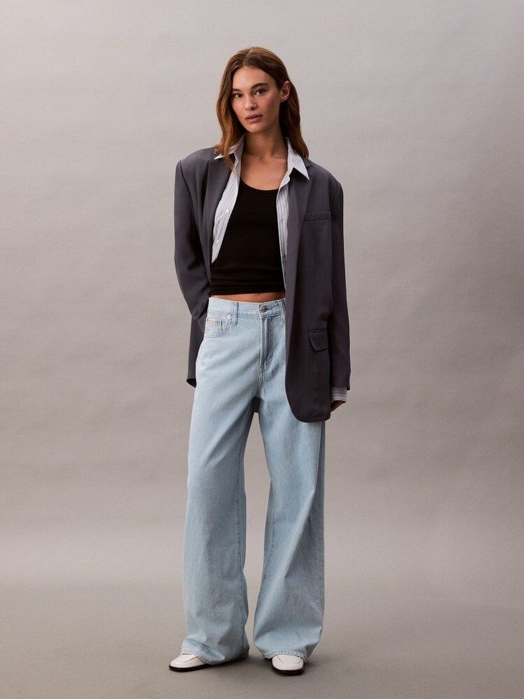 MallCalvin Klein - Quần jeans ống rộng nữ Linen Blend Wide Leg Jeans