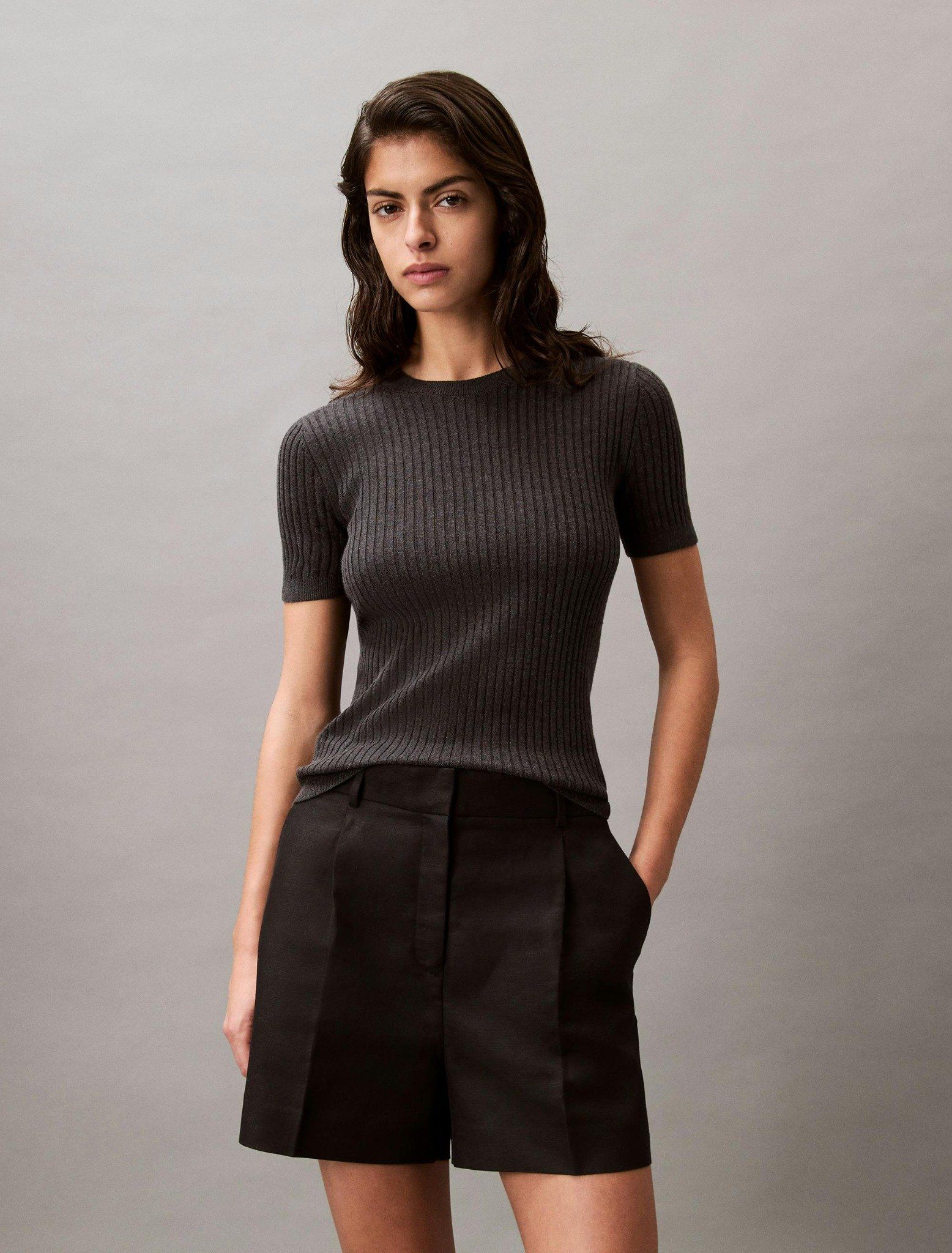 MallCalvin Klein - Quần ngắn CK nữ Structured Linen Tailored Shorts