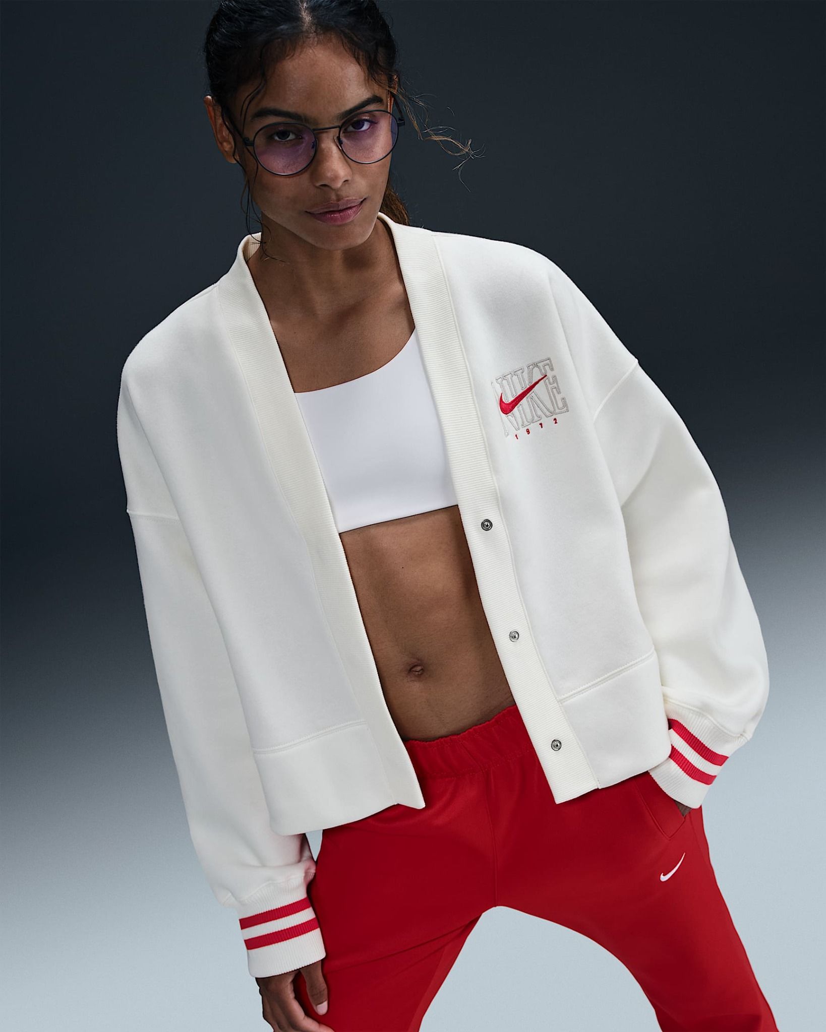 Quá khứ gặp gỡ hiện tại trong chiếc áo len cardigan ngoại cỡ này có một năm quan trọng trong lịch sử của Nike. Lớp lông cừu trung bình của nó tạo cảm giác cực kỳ mềm mại ở bên trong và mịn màng ở bên ngoài để tạo sự ấm cúng và cấu trúc.