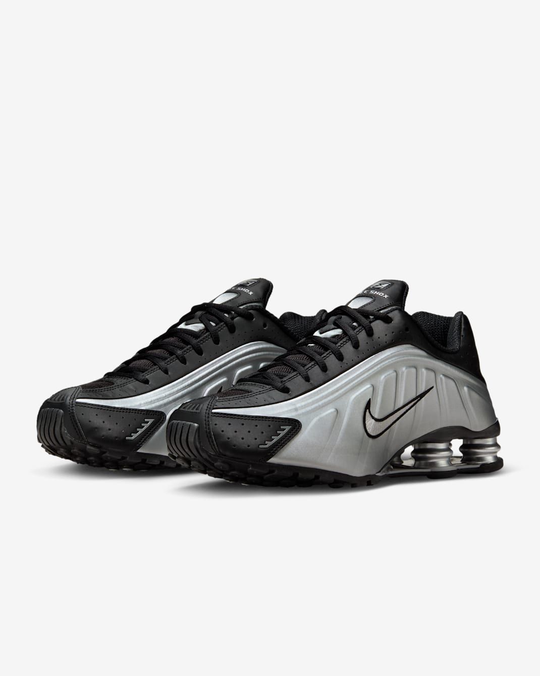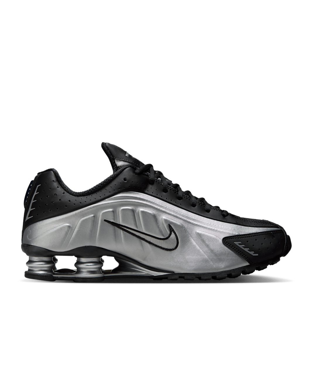 Nike Shox R4 được tái hiện từ phiên bản gốc năm 2000 với thiết kế đường nét hiện đại và công nghệ đệm Shox đặc trưng. Các cột Shox ở gót chân không chỉ phân bổ trọng lượng để tối đa hóa sự thoải mái mà còn tạo nên diện mạo táo bạo trên đường phố.