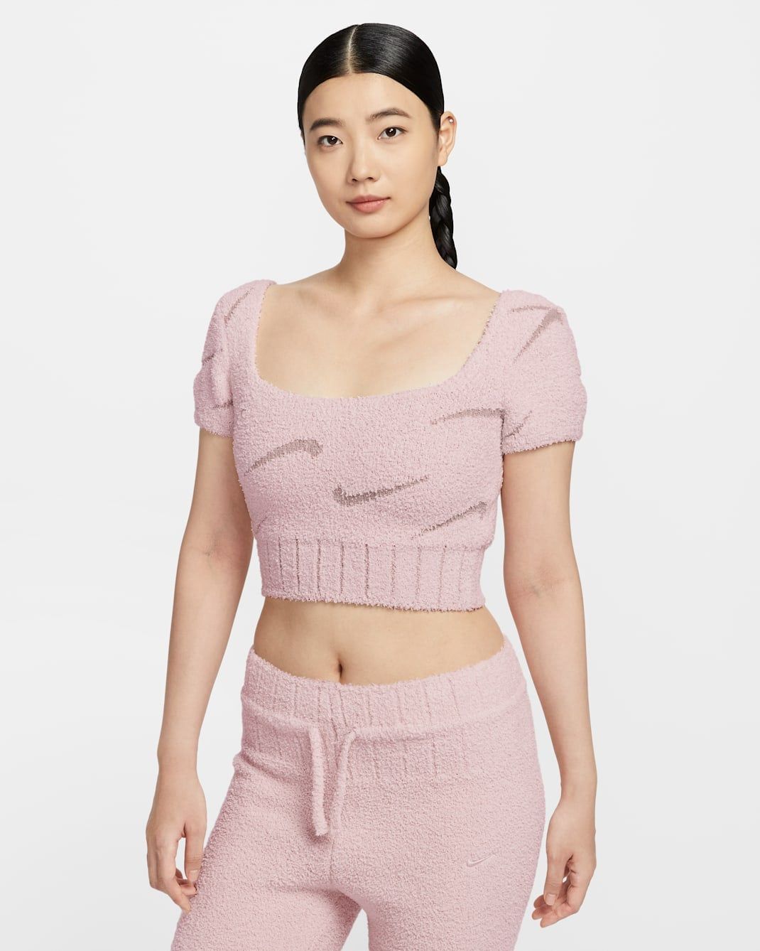 Nike - Áo len tay ngắn thể thao Nữ Sportswear Phoenix Cosy Bouclé Women's Short-Sleeve Cropped Knit Top