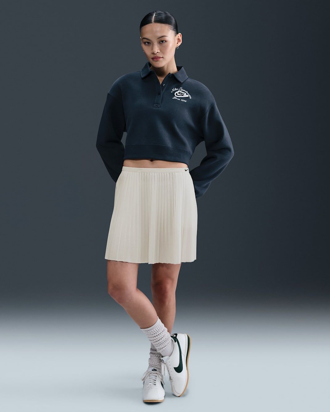 Chiếc váy Nike Sportswear Women's Pleated Skirt là minh chứng hoàn hảo cho triết lý "Quiet Luxury" – sang trọng không cần phô trương. Lấy cảm hứng từ thẩm mỹ Tennis cổ điển, thiết kế được tái định nghĩa để trở thành một món đồ Essential trong tủ đồ của người phụ nữ hiện đại. Với những nếp gấp xếp ly tinh tế và gam màu Xanh hải quân sâu lắng, sản phẩm mang đến một Silhouette thanh lịch, giúp bạn tự tin chuyển mình từ sân tập ra phố thị với phong thái đầy cuốn hút và đẳng cấp.