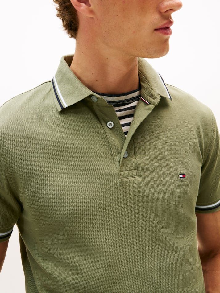 Chiếc áo polo Tommy Hilfiger Tipped Slim Fit Seasonal là minh chứng cho tư duy thẩm mỹ "Quiet Luxury" – không cần phô trương nhưng vẫn toát lên đẳng cấp khác biệt. Với sắc Xanh rêu (Olive) thời thượng từ BST Thu 2025, đây là món đồ thiết yếu giúp các quý ông xây dựng hình ảnh hiện đại, lịch lãm và đầy chiều sâu. Từng đường kim mũi chỉ đều phản ánh di sản thời trang Mỹ cao cấp, mang lại sự tự tin tuyệt đối trong mọi hoàn cảnh.