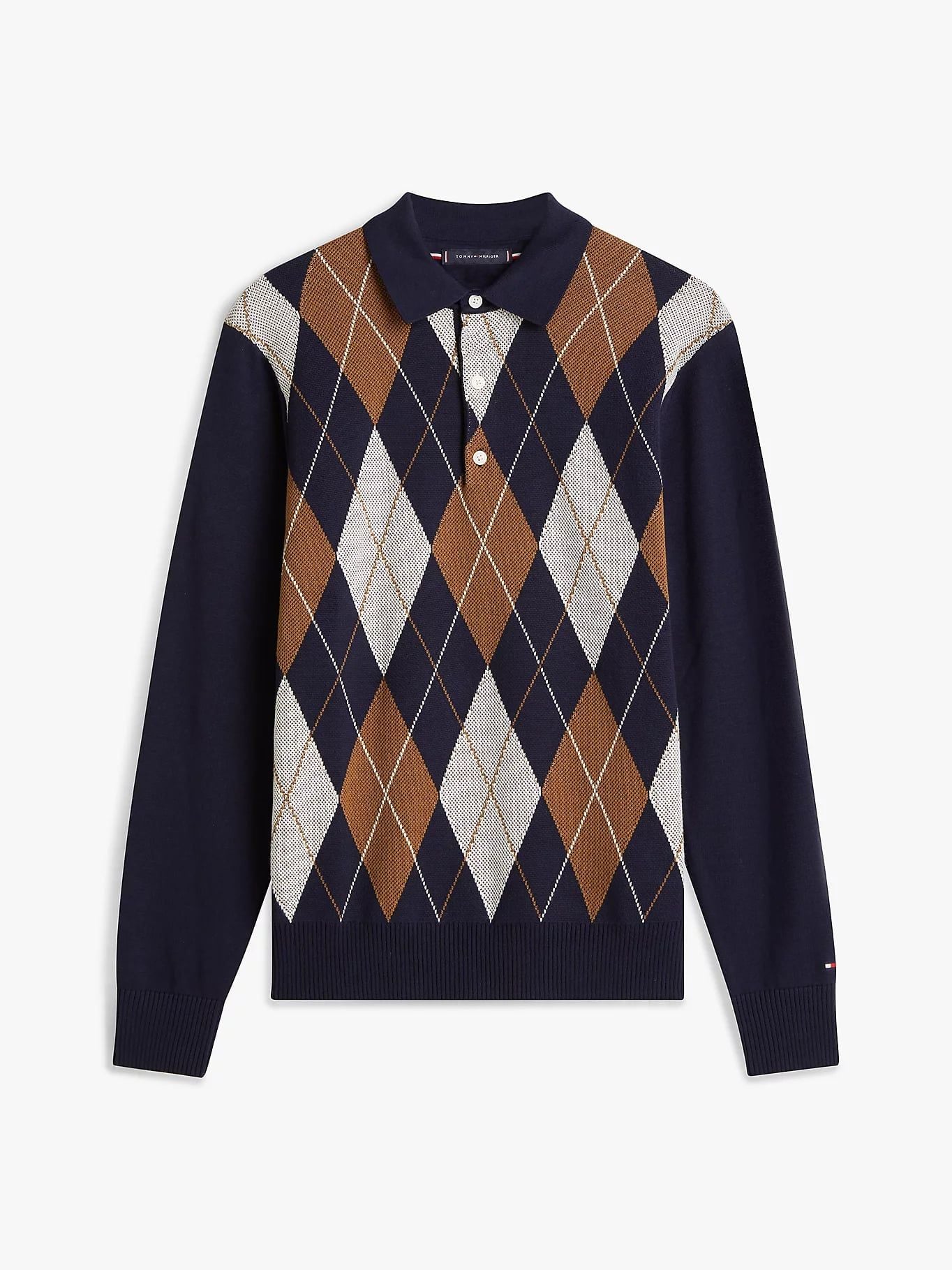 Tommy Hilfiger - Áo len tay dài nam Argyle Rugby Collar Jumper