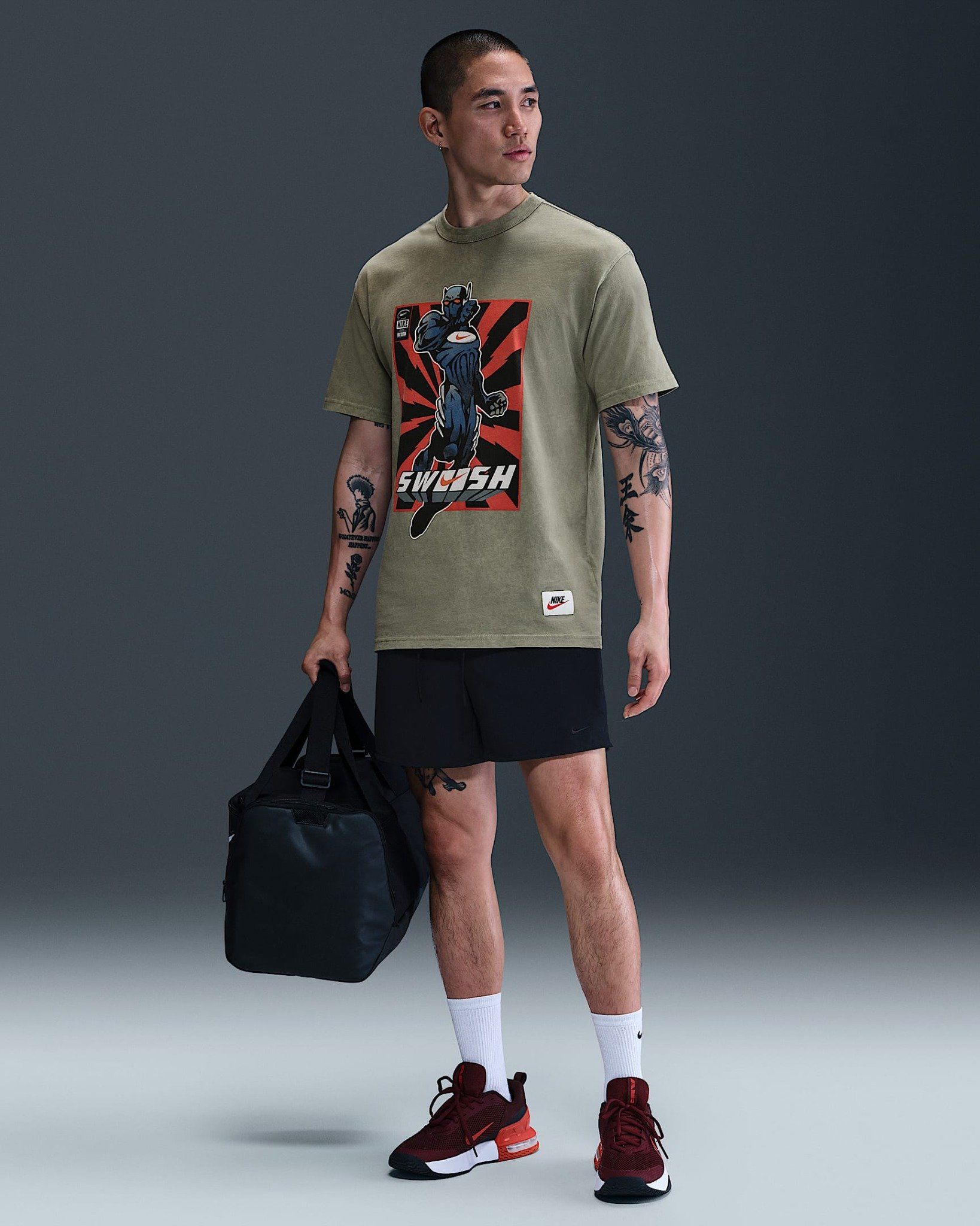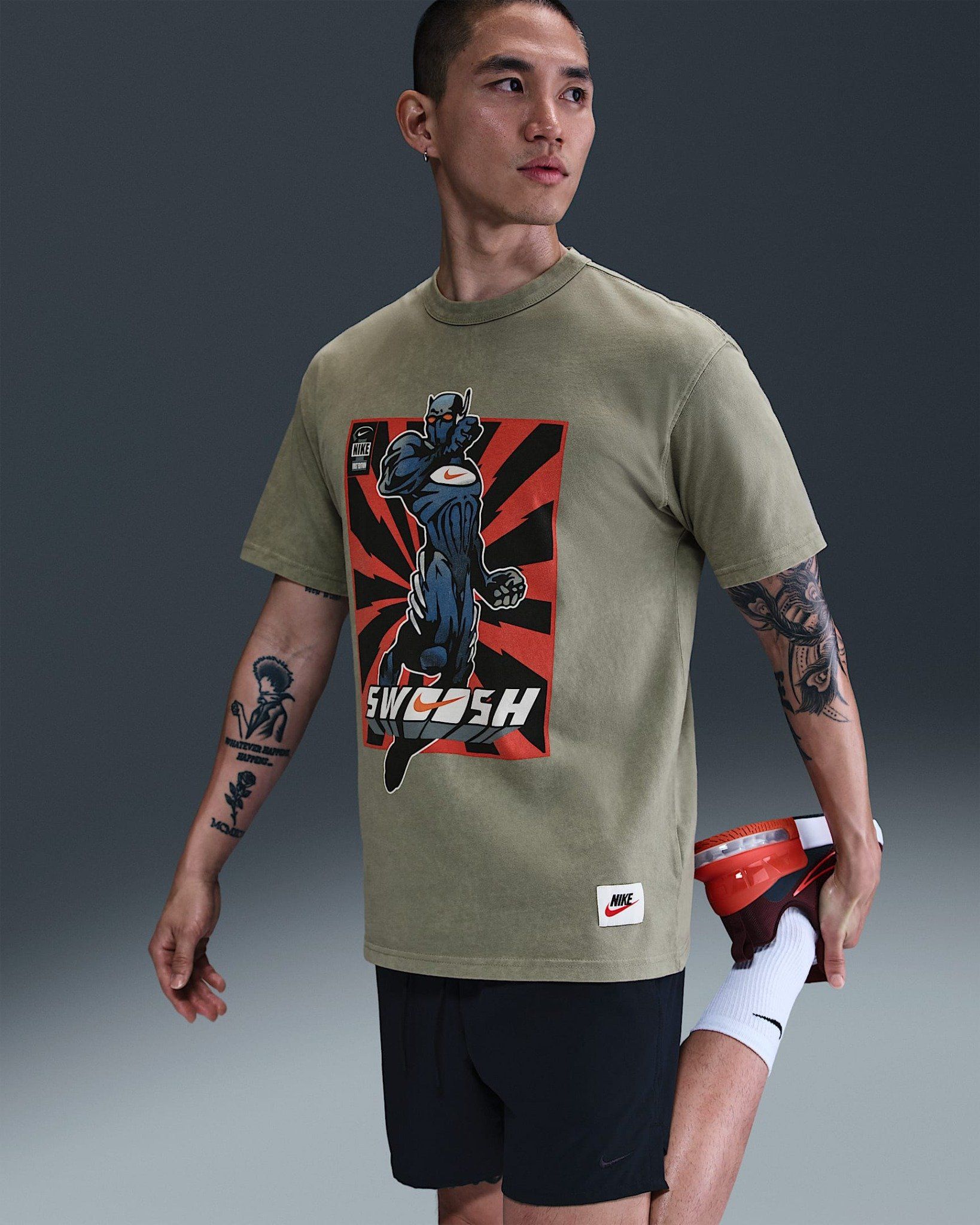 - Họa tiết: Đồ họa mang cảm hứng nghệ thuật đương đại kết hợp cùng biểu tượng Swoosh, tôn vinh tinh thần năng động và di sản lâu đời của Nike.
