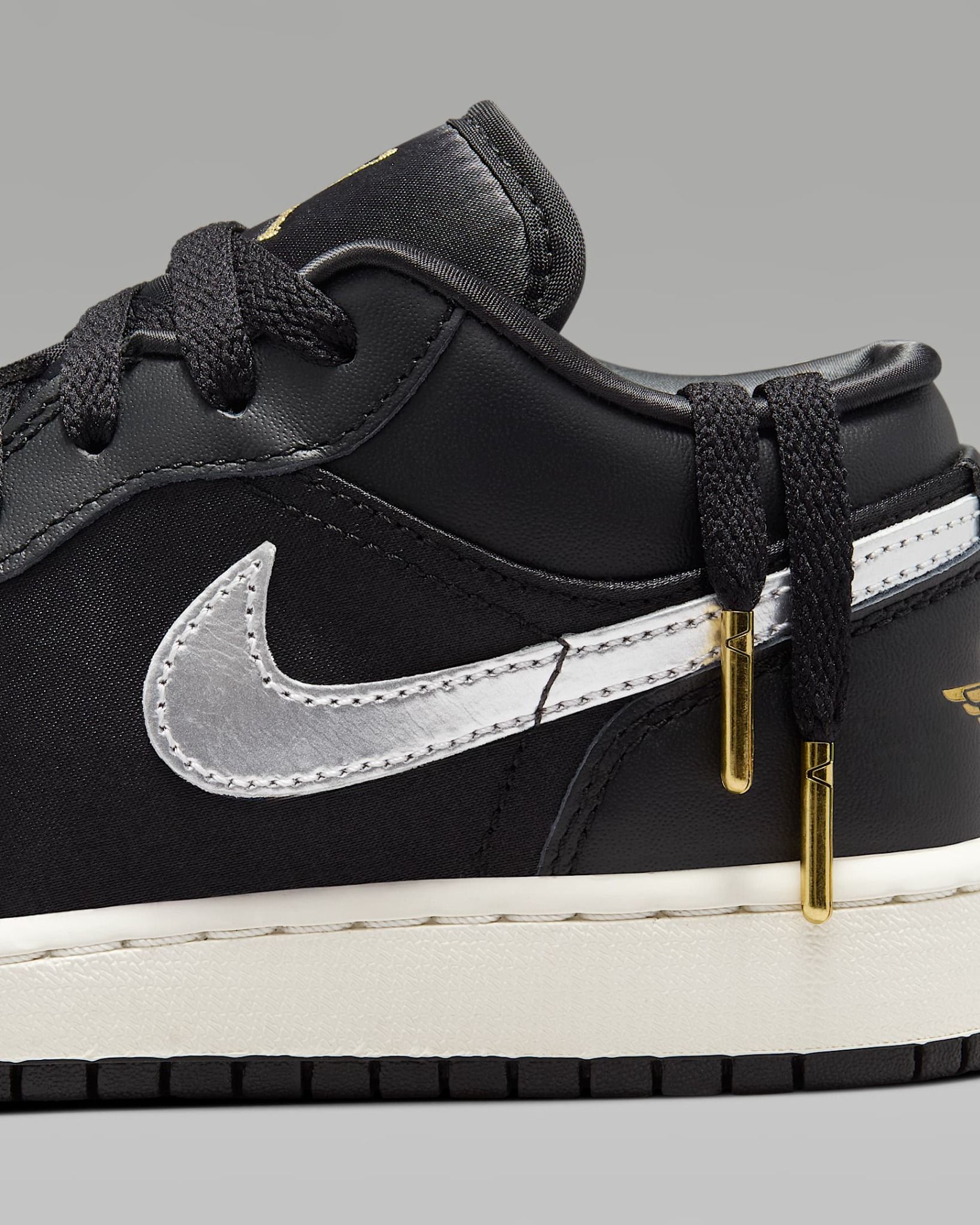 Nike Air Jordan 1 Low SE không chỉ đơn thuần là một đôi giày thể thao; đó là sự giao thoa giữa di sản bóng rổ huyền thoại và ngôn ngữ thiết kế đương đại. Phiên bản "Special Edition" này được chế tác dành riêng cho các bạn nhỏ (Older Kids), mang đến một diện mạo Sophisticated với sự kết hợp tinh tế giữa các mảng chất liệu cao cấp và tông màu Đen huyền bí, điểm xuyết bởi các chi tiết Metallic sang trọng. Đây là khoản đầu tư xứng đáng để nâng tầm phong cách và sự tự tin cho các bạn trẻ trong mọi hoạt động thường ngày.