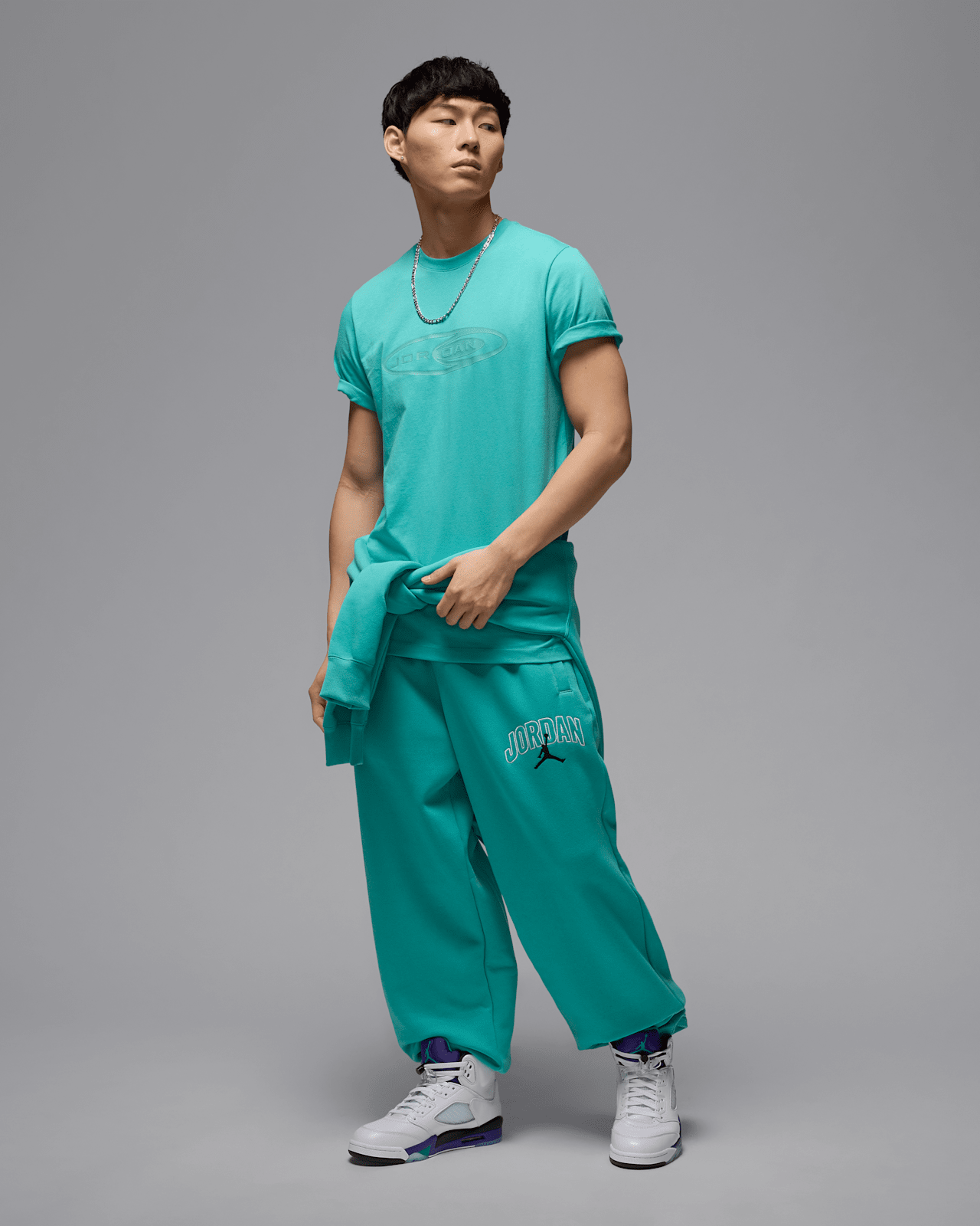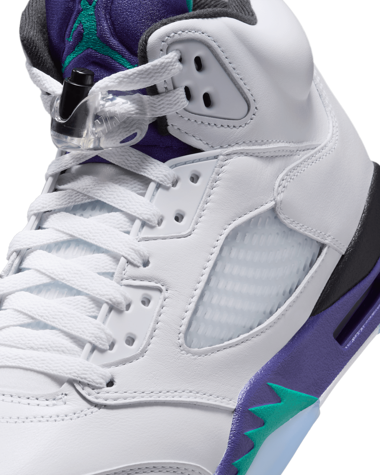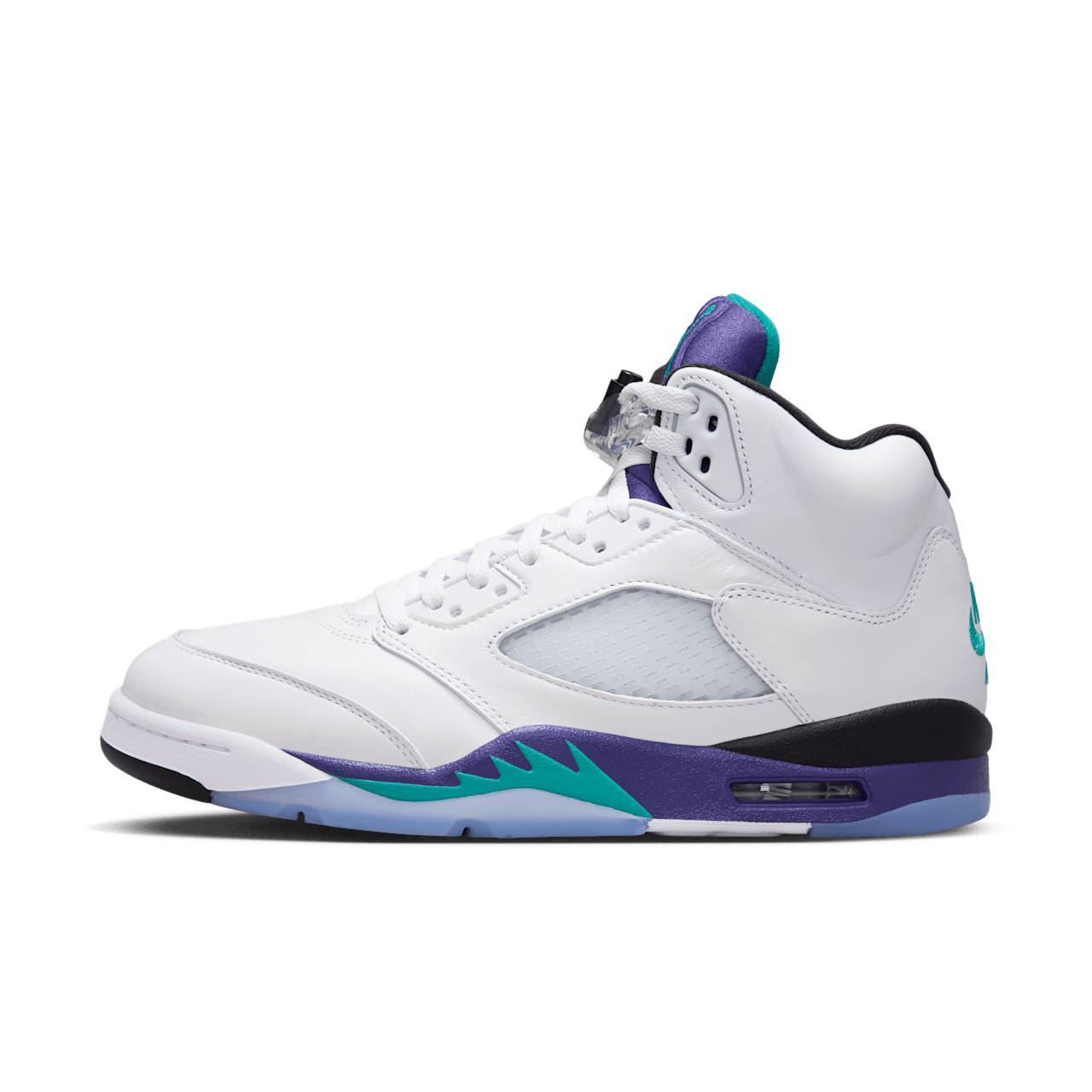 Giày AJ5 ra mắt năm 1990, và phối màu "Grape" đã phá vỡ khuôn mẫu của những màu Jordan truyền thống hơn—trắng, đỏ và đen. "Grape" kết hợp chất liệu da trắng mịn với các điểm nhấn màu Grape Ice và New Emerald—ban đầu gợi nhớ đến đội bóng NBA non trẻ đến từ quê nhà Bắc Carolina của MJ. Nhận được sự hoan nghênh ngay lập tức trong văn hóa đại chúng những năm 90, biểu tượng vượt thời gian này đã nhanh chóng củng cố vị thế của mình như một hiện tượng văn hóa.