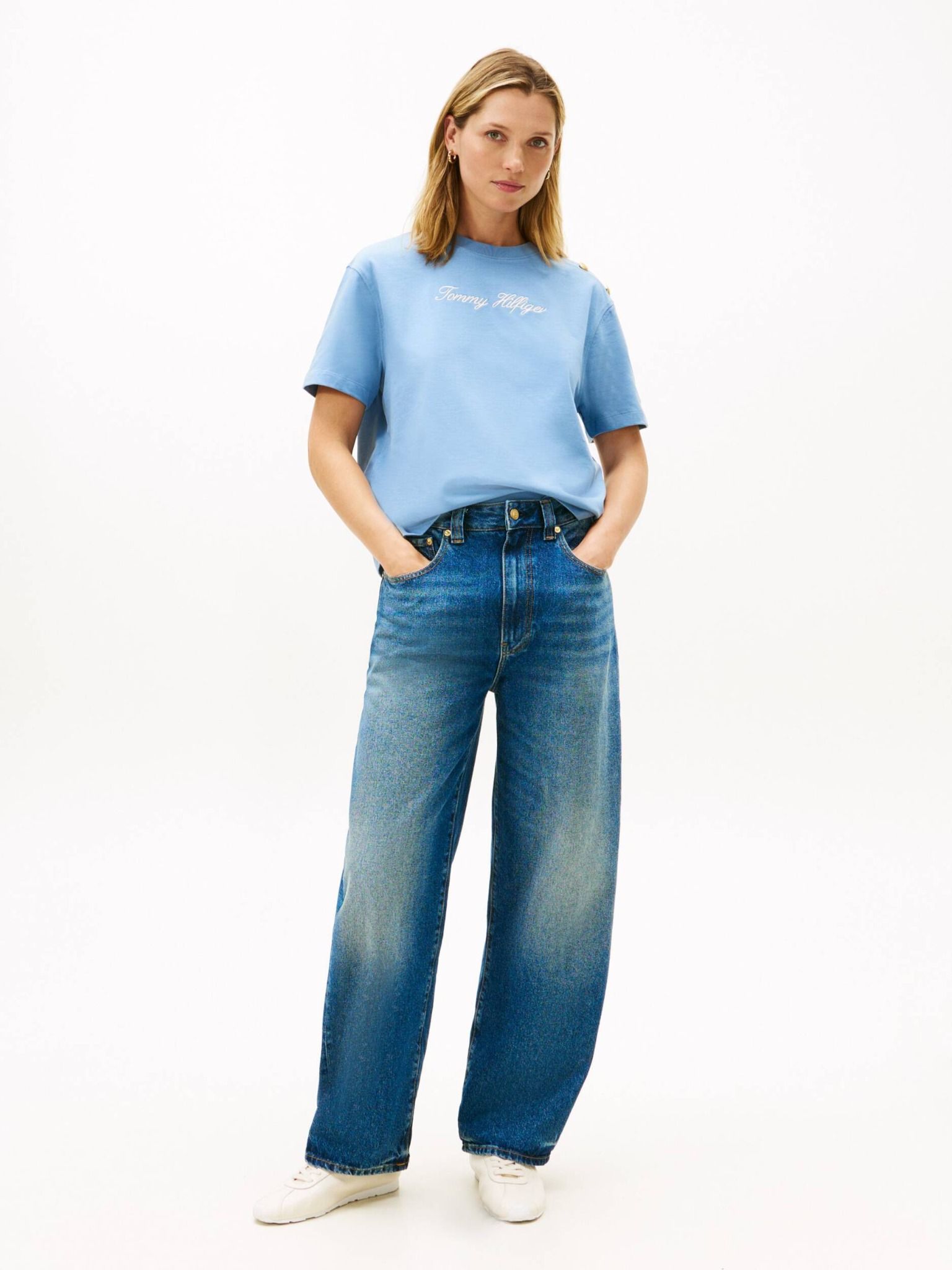MallTommy Hilfiger - Áo thun tay ngắn nữ Gold-Tone Button Logo Embroidery Relaxed T-Shirt